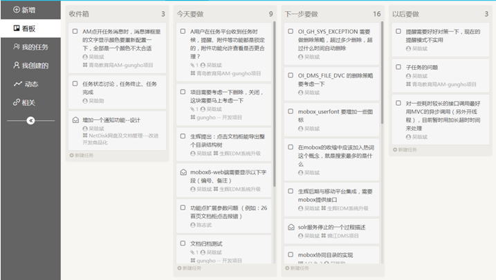 任務管理是企業(yè)協(xié)同的重要組成部分。 任務管理是企業(yè)內(nèi)部事務協(xié)同的重要工具,與傳統(tǒng)的OA有類似之處,都是推動企業(yè)內(nèi)部事務有效快速的推進,但之前存在不同之處,OA是屬于剛性流程化的管理,側(cè)重于流程與規(guī)范,任務管理側(cè)重于人員、事務之間的協(xié)同,側(cè)重于靈活度與協(xié)同性上 從靈活度上看,可以用于企業(yè)各種事務的管理與處理,比如客戶進展管理、開發(fā)進度、產(chǎn)品設計等