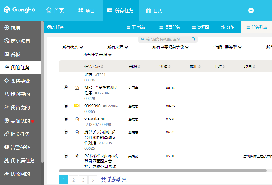 我的任務(wù)和任務(wù)看板列出的都是我執(zhí)行的任務(wù),只是在我的任務(wù)里列出的任務(wù)更全面包括已經(jīng)完成、歸檔的任務(wù),而看板中列出的都是帶完成的任務(wù)。另外,在我的任務(wù)頁面中列出的任務(wù)的形式和看板不同,看板關(guān)注的任務(wù)是任務(wù)的計劃性,而我的任務(wù)頁面更多地體現(xiàn)如何查找、列出任務(wù),任務(wù)的分類列表方法更豐富。