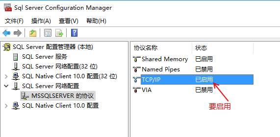 2、sqlserver 必須開啟 tcp協(xié)議;