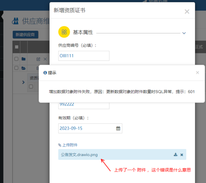文件上傳:更新數(shù)據(jù)對(duì)象的附件數(shù)量時(shí)SQL異常,提示:601