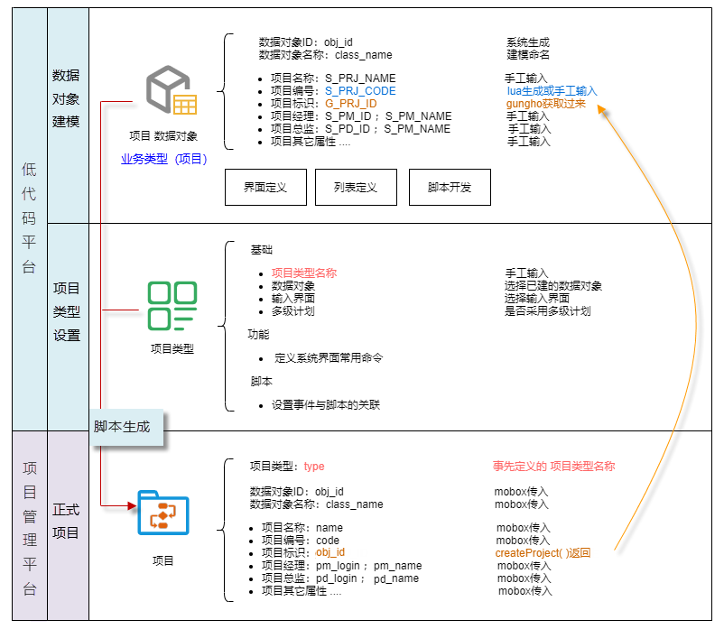 Mobox 數(shù)據(jù)對(duì)象先創(chuàng)建 –》之后通過腳本生成Gungho的項(xiàng)目 –》得到Gungho項(xiàng)目的prj_id –》更新mobox數(shù)據(jù)對(duì)象的 G_PRJ_ID