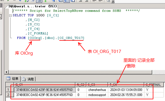 通過(guò) SQL的管理器,打開 數(shù)據(jù)庫(kù)OIOrg 的 OI_ORG_T017表
