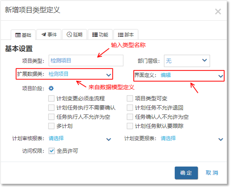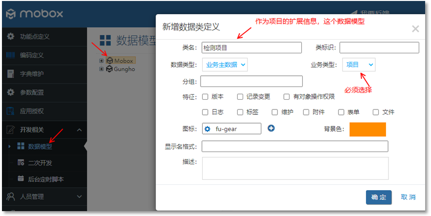 企業(yè)在實(shí)施項(xiàng)目管理系統(tǒng)的時(shí)候,不通類(lèi)型的項(xiàng)目其屬性可能是不一樣的。而Gungho標(biāo)準(zhǔn)系統(tǒng)內(nèi)對(duì)項(xiàng)目的屬性,主要包括(項(xiàng)目名稱(chēng)、編號(hào)、開(kāi)始結(jié)束日期等)。為了適應(yīng)企業(yè)個(gè)性項(xiàng)目信息的輸入,我們需要通過(guò)Mobox平臺(tái)定義項(xiàng)目類(lèi)型去適應(yīng)這個(gè)需求