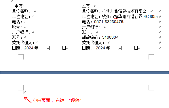 我們?cè)谧龊贤臅r(shí)候,最后輸入的是甲方,乙方。而甲方乙方的信息很有可能是用表格來輸入的。Word插入表格后默認(rèn)在表格下方會(huì)增加一行。而這一回若放不下會(huì)進(jìn)入下一頁,形成空白頁面。 我通過了很多方法都無法刪除這個(gè)一行(就是無法刪除空白頁面)