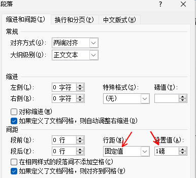 將行距設(shè)置為固定值,例如1磅,然后點(diǎn)擊確定。