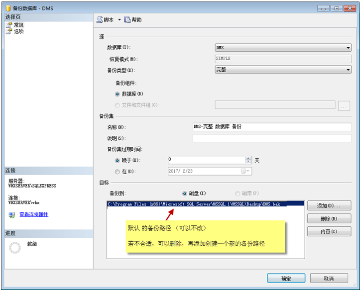 2)前面我們將mobox系統(tǒng)數(shù)據(jù)庫(kù)備份產(chǎn)生了?DMS.bak?文件,將這個(gè)文件拷貝到別的服務(wù)器,并以當(dāng)天名稱加后綴,進(jìn)行保存(如:DMS_20170222.bak).