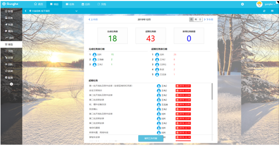 能對本項目的任務(wù)執(zhí)行狀態(tài)進(jìn)行統(tǒng)計分析,能看到完成的排行等信息