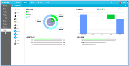 - 成員在項目里任務(wù)執(zhí)行統(tǒng)計分析