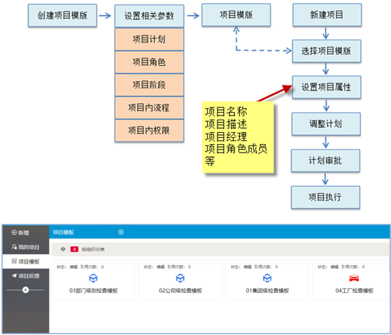 有些企業(yè)項目實施相對比較規(guī)范或標(biāo)準(zhǔn),其項目計劃、相關(guān)權(quán)限設(shè)置、流程設(shè)置、階段設(shè)置等都非常相似。新項目可能主要就變更了一下人員。這類項目,我們實現(xiàn)可以建立項目模版,在項目模版內(nèi)將項目核心參數(shù)(如:項目計劃、項目權(quán)限、階段等)都先建立好,生成項目模版。新項目的時候,可以通過套用項目模版來新建項目。