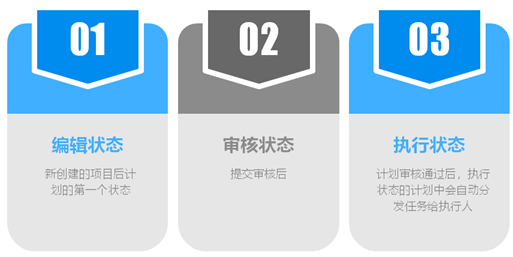 項目計劃中創(chuàng)建的任務(wù)并不能馬上執(zhí)行,必須要通過審核后系統(tǒng)才能觸發(fā)任務(wù)下達(dá)。項目計劃有以下3個狀態(tài)